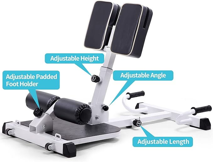 • 【Suitable Design for Everyone】 Adjustable design makes this workout station fits different sizes and body shapes. Foot holder adjustable to fit your feet, rear cushion height adjustable to feet your legs, rear cushion angle adjustable to offer you more training options