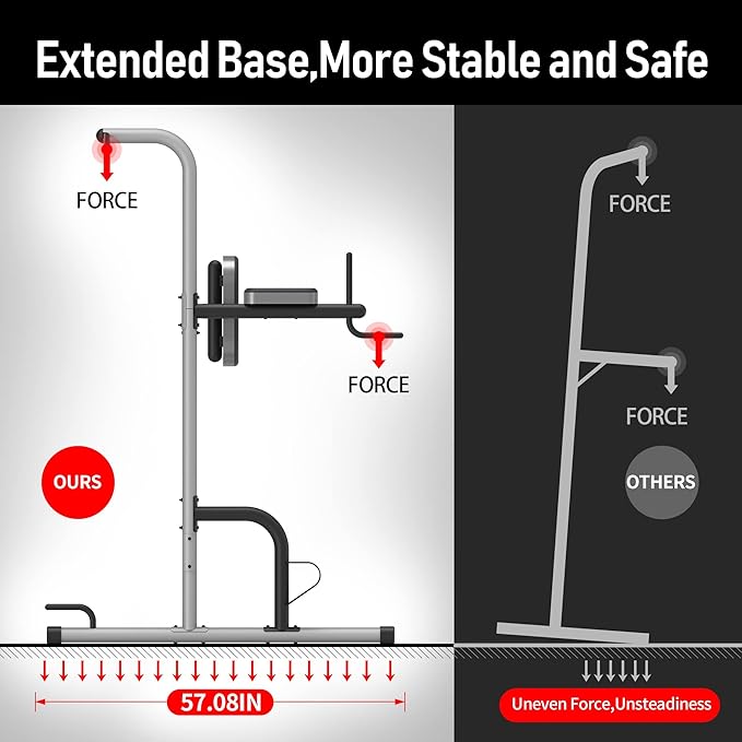 • 【Solid Build Workout Tower】Heavy duty powder coated steel tube frame and non-slip foot sets make the stability,Customized design with back cushion and elbow pads,Gym-level construction with foam rollers for real comfort,136cm extended curved base with 4 powerful sunction caps and multiple stable anti-skid cross bar,all these designs of this home gym equipment highlight the stability and safety to avoid any wobble.