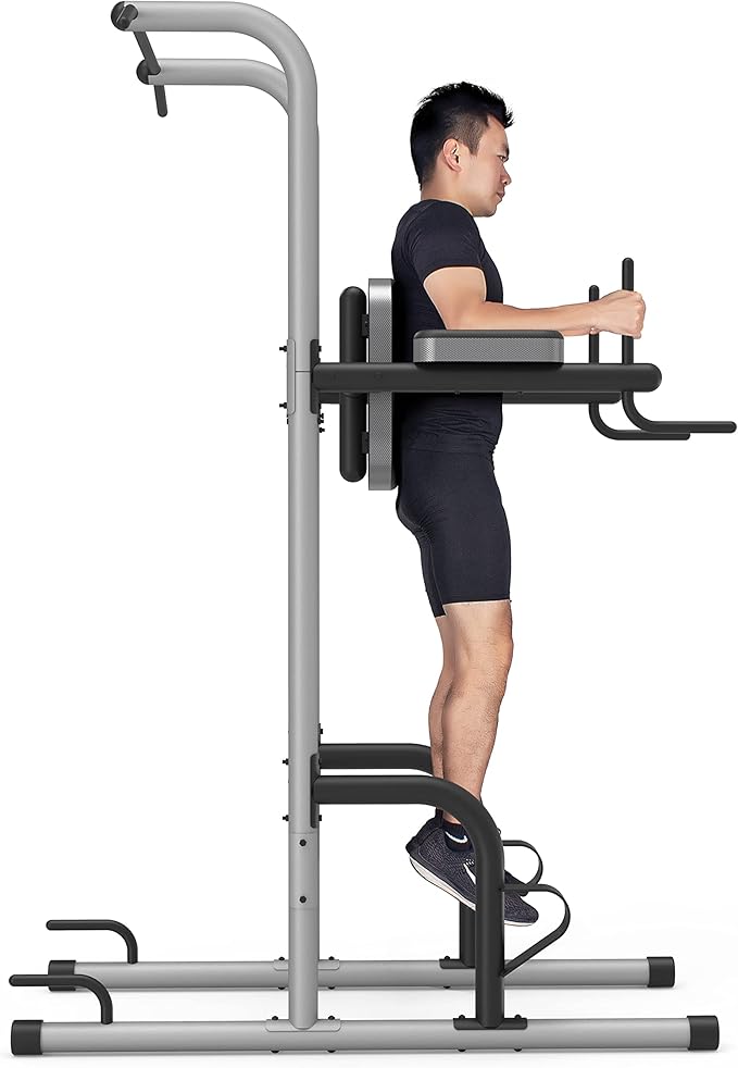 • 【Compact and Utility】Leikefitness power tower takes the compact space to use and can be collected in any room or garage.Pull up and dip bar station have 4 adjustable height from 70.47 - 88.19 inches,Over 500LBS high capacity.