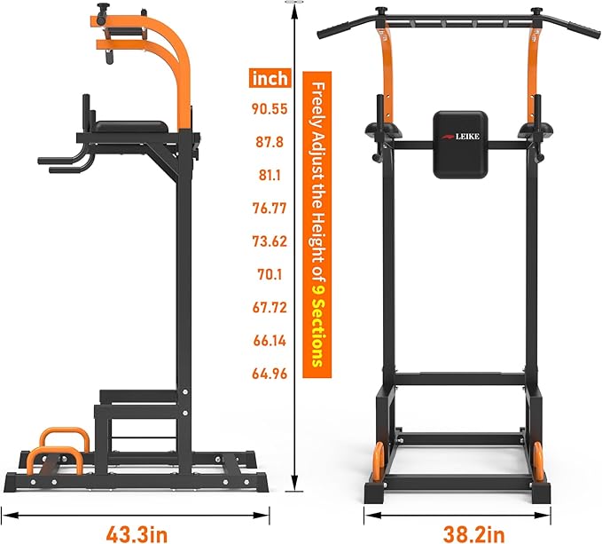 - 【Compact and Utility】Leikefitness power tower takes the compact space to use and can be collected in any room or garage.Pull up and dip bar station have 4 adjustable height from 70.47 - 88.19 inches,Over 500LBS high capacity.
