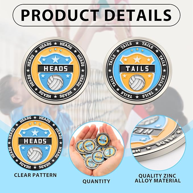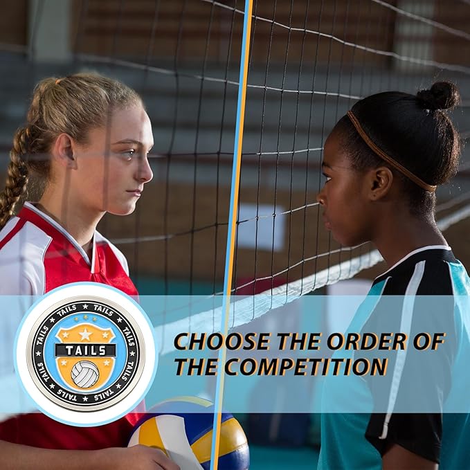 - Delicate Design: the volleyball flipping coins feature a vibrant and eye catching design, showcasing the colors typically associated with volleyball; The vivid colors not only enhance the overall aesthetic appeal but also make it easy to spot and track the results during the game