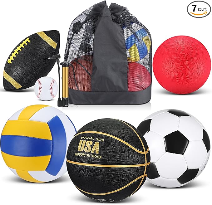 - 6 Ball Set: this sport ball set has all of your favorite sports covered! You will receive football, basketball, soccer ball, volleyball, playground ball, baseball, pump, and large capacity carry bag which can holds up to 6 balls; Grab your friend and play a game of sport balls