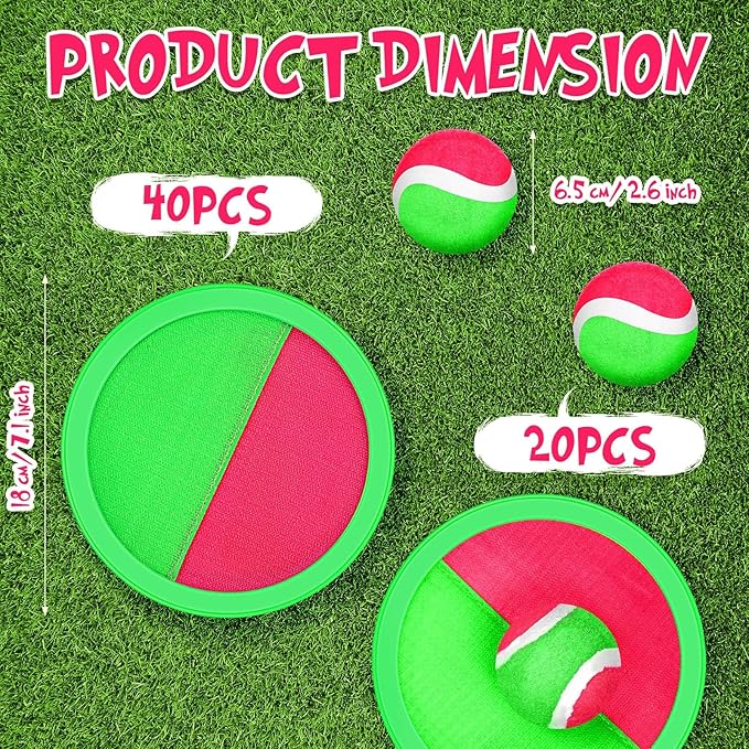 - Large Quantity: toss and catch ball set contains 40 paddles and 20 sticky balls, flexible and fun, enough quantity for you to play with friend and family and share the fun of this sport with each other; This catch game requires a minimum of 2 players