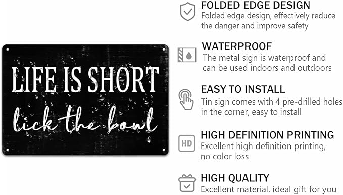 Life is Short Lick the Bowl Metal Tin 8x12 Inch