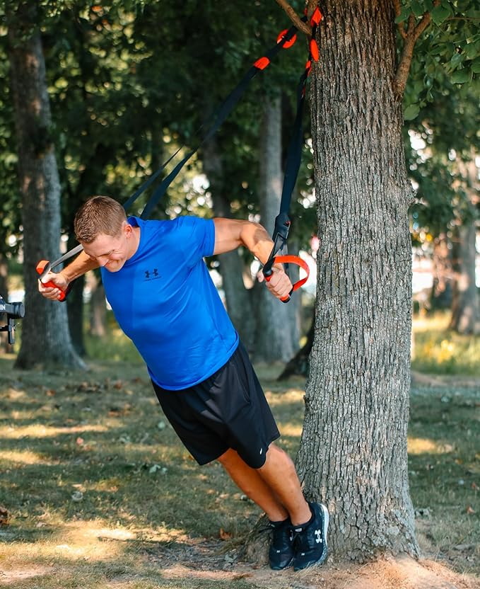 - Industrial-strength suspension straps are built for punishing workouts. Quickly change between high and low exercises. EASY-IN molded foot cradles retain shape for SAFER use when training lower body