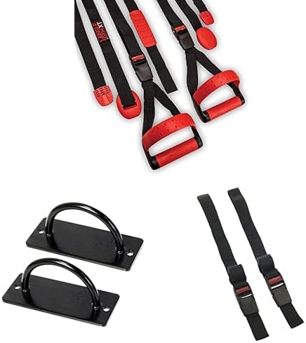 - Two non-scuff door anchors provide secure door attachment for the home door workout or office and loop-over cinch connection to bars, beams and tree limbs.