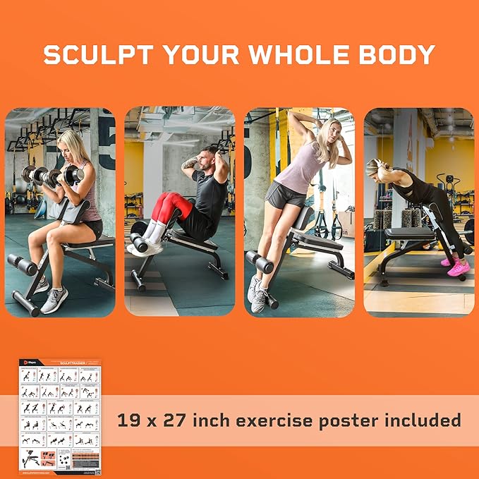 • DO MORE WITH YOUR ROMAN CHAIR EXERCISE EQUIPMENT - Much more versatile than a regular roman chair hyperextension bench, the SculptTrainer lets you switch between over 20 whole-body exercises with ease.