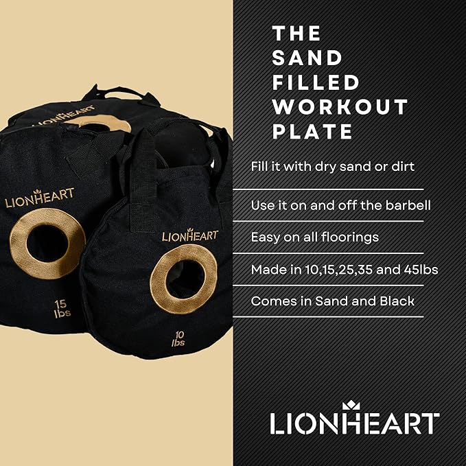 • MULTI-SURFACE DURABILITY: Use it! drop it! On concrete, wood, or carpet without fear of damage or noise. Lionheart sand weights can be used on and off the barbell for everything from squats to curls and experience a versatile and quiet workout, adapting to various surfaces seamlessly