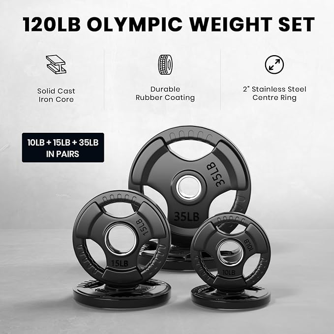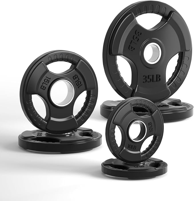 - Comfortable and Convenient: Each plate has 3 openings with strips on them for easy and secure grip when loading and unloading the weights. Labeled in LB for easy recognition.