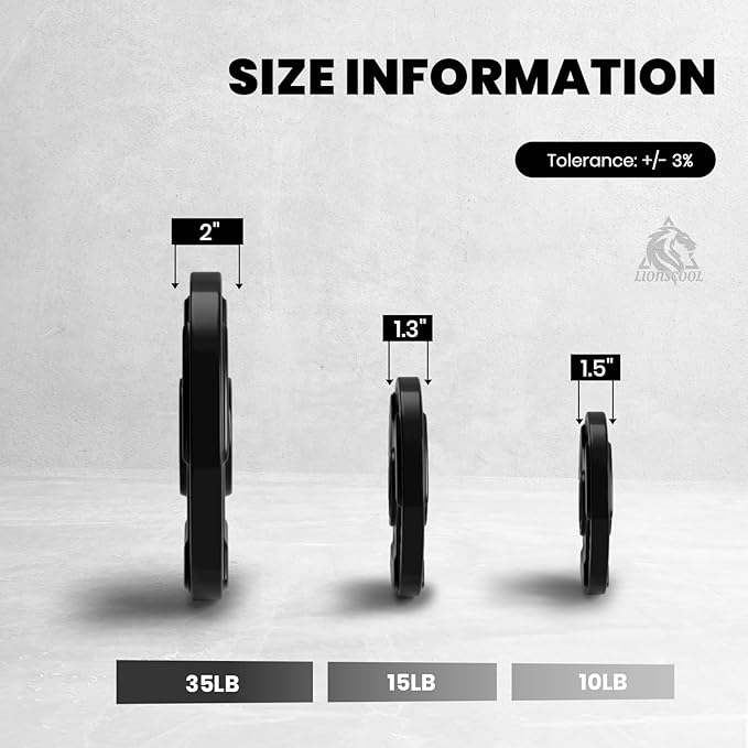 LIONSCOOL 2-Inch Rubber Olympic Grip Weight Plates (2.5-45LB), One