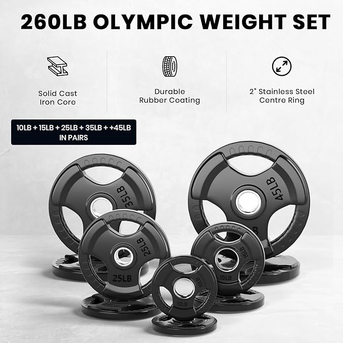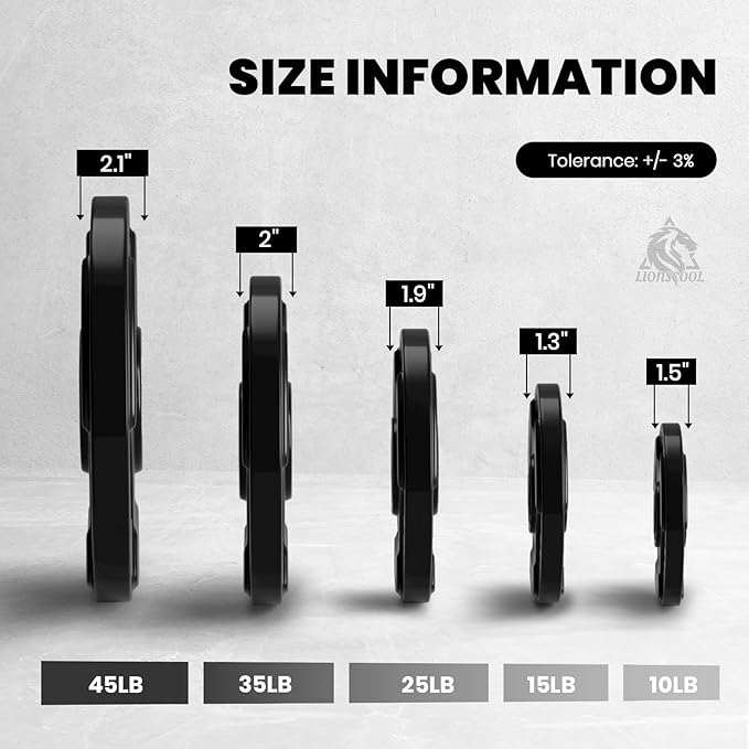 LIONSCOOL 2-Inch Rubber Olympic Grip Weight Plates (2.5-45LB), One