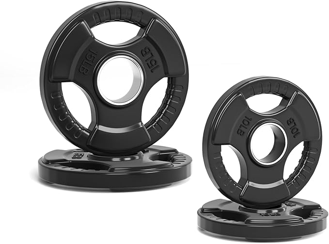 - Comfortable and Convenient: Each plate has 3 openings with strips on them for easy and secure grip when loading and unloading the weights. Labeled in LB for easy recognition.