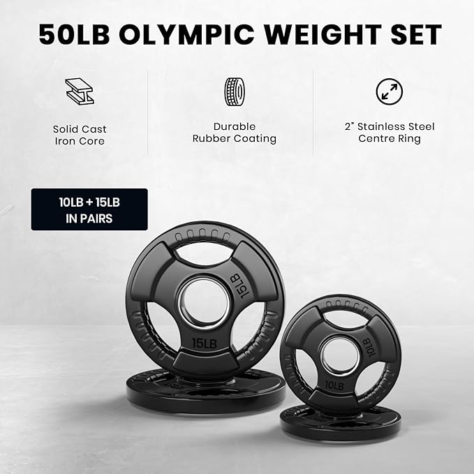 LIONSCOOL 2-Inch Rubber Olympic Grip Weight Plates (2.5-45LB), One