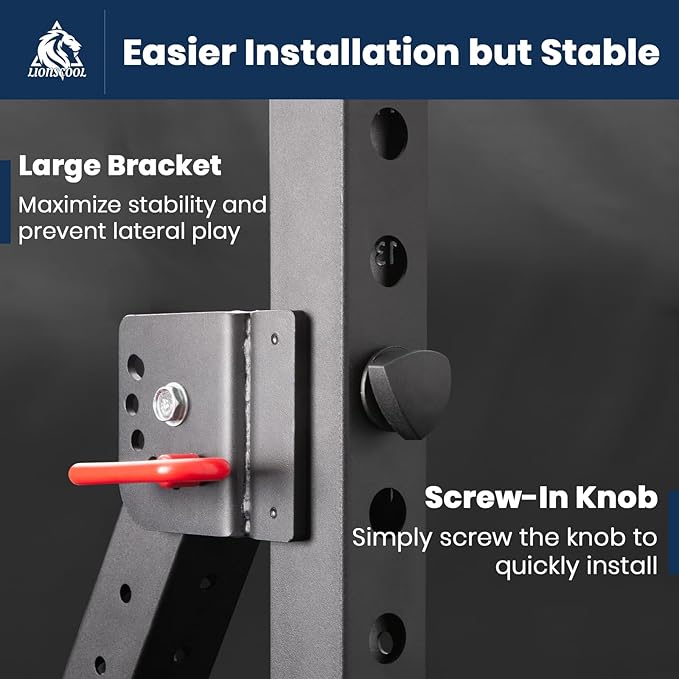 - Easy Installation: The Screw-In Knob design makes the attachment extremely easy and convenient to set up. Simply insert the pin into the hole and screw the knob to fix the attachment to the upright. NO TOOLS NEEDED. It is super sturdy and stable even during the most intense training. We also added a rubber bumper to protect the upright finish from impact during workouts.