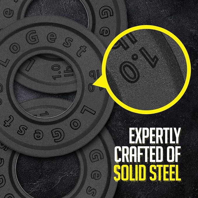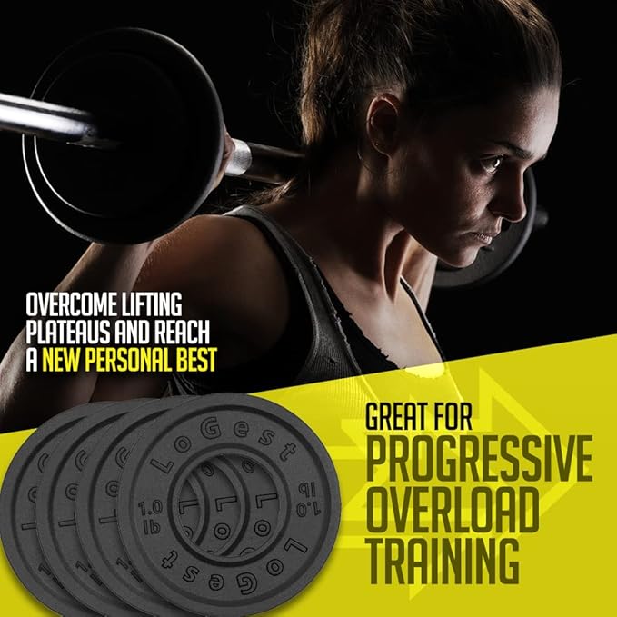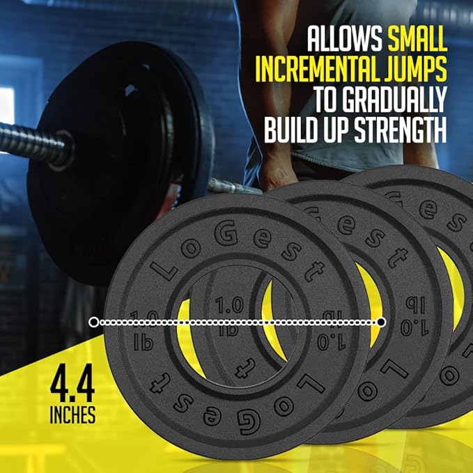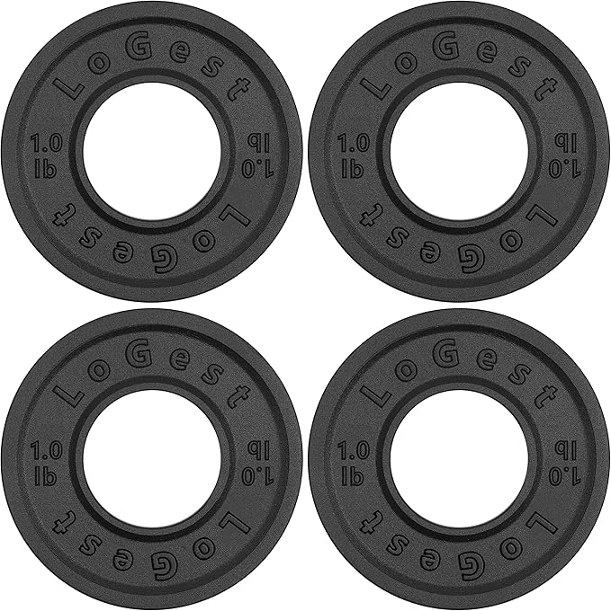 - 4-Piece Set: Overcome lifting plateaus and reach a new personal best with LoGest’s Set of 4 Plates. Each one is 4.4 inches long with a weight of 1 pounds, taking up minimal space on a bar sleeve to leave plenty of room for other plates and collars.