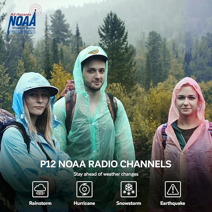 - (🌦️ Essential for Outdoor Adventures): Joycall JF-22 walkie talkies scan all 12 NOAA Weather Radio channels for real-time updates, helping you avoid severe weather. Activate the emergency alert by pressing and holding the [LAMP] button for 3 seconds, triggering a loud siren and flashing flashlight.