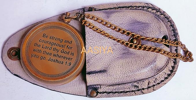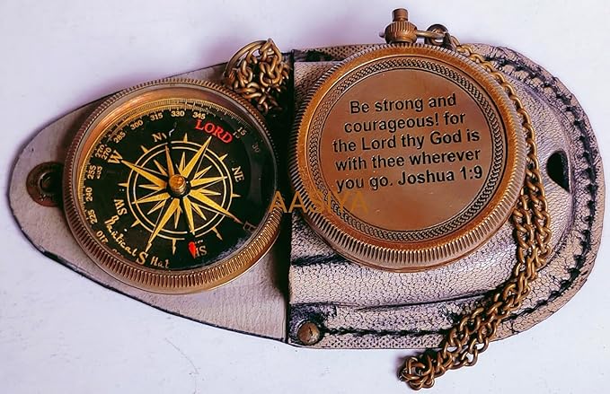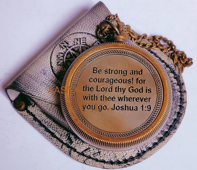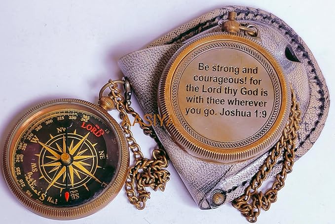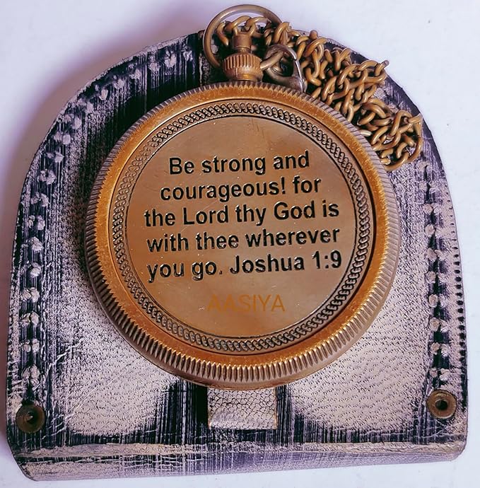 - Inspirational Inscription - Engraved on the reverse side is the inspirational scripture from Joshua 1:9 (“Be Strong and courageous! For the Lord thy God is with the wherever you go”) & it serves as a means to remember the Lord always and to keep our focus on Him--our Guide & True North. Over 2 inches in diameter our compass hangs beautifully on the included 6 inch gold display