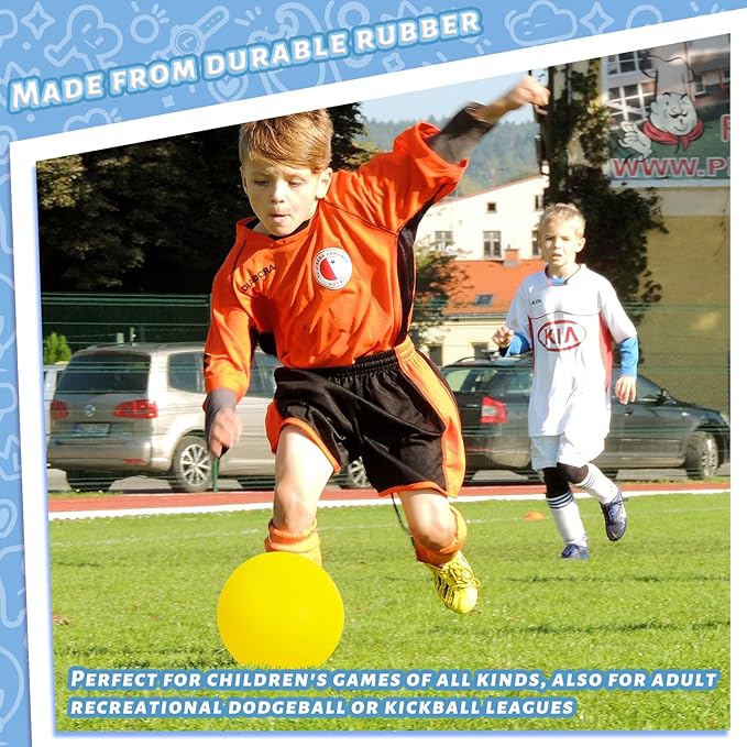 - Versatile Play: Perfect bouncing balls for children's games of all kinds, including dodgeball, kickball, handball, wall ball, and four square. These kickballs can also be used for adult recreational dodgeball or kickball leagues, or for fun at a BBQ, cookout and summer birthday party.