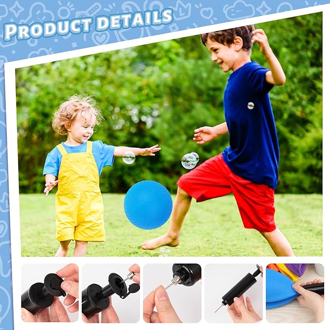 - Convenient Inflation: Equipped with a sleek black inflatable pump, users can easily inflate and deflate the balls at their convenience, adding an extra layer of convenience to the play experience.
