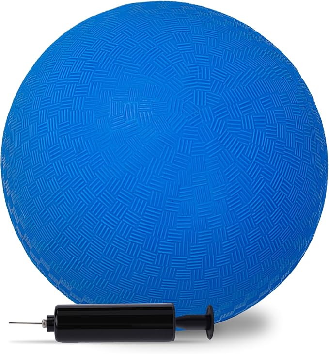 - Package Include: The ball set includes 1PC blue playground ball and 1PC air pump (Placed inside of the handle of pump ). The ball has an 8.5inch diameter (after fully inflating), featuring textured no-slip grip, bright and vibrant.
