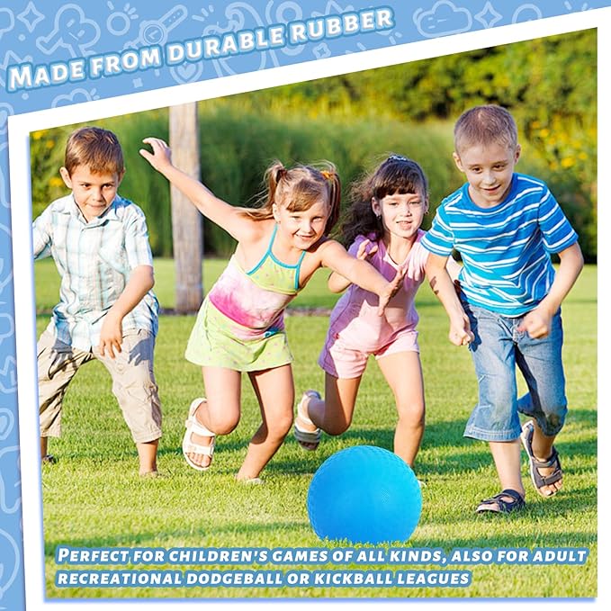 - Versatile Play: Perfect bouncing balls for children's games of all kinds, including dodgeball, kickball, handball, wall ball, and four square. These kickballs can also be used for adult recreational dodgeball or kickball leagues, or for fun at a BBQ, cookout and summer birthday party.