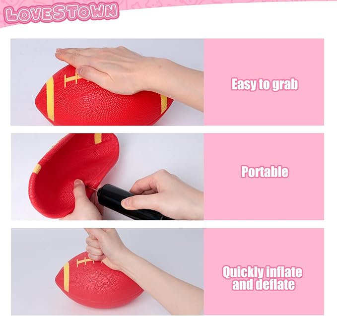 - Easy Inflation - Our inflatable football requires inflation before use (pump not included), but the process is simple and straightforward. Measuring a generous 8.5 inches, this rubber football features a convenient valve, allowing for seamless pressure adjustment to suit your preference.