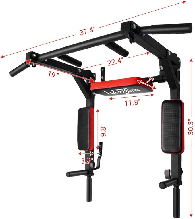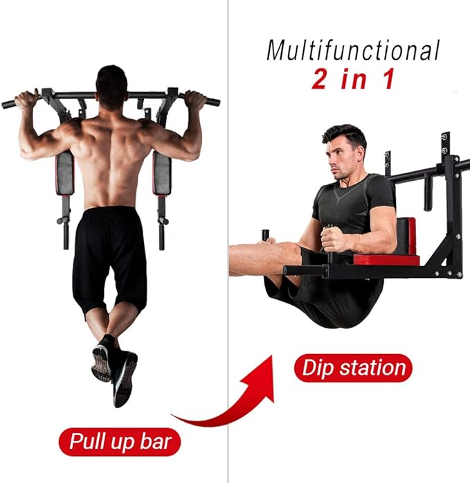 - Multifunctional Fitness Machine: This multifunctional wall mounted pull up bar can support many kinds of sport exercise like pull ups, chin ups, dip station, leg raises and boxing. Perfect for exercising your backs, shoulder, chest, arms, triceps, biceps, lats, and the front of your abs.