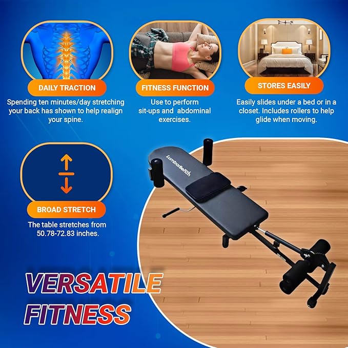 - DAILY TRACTION: Spending ten minutes/day stretching your back has shown to help realign your spine, increase blood circulation, and achieve lumbar relief while reducing the pressure caused by a compressed spine. Spinal Traction can help reestablish a normal physiological curvature of the lumbar spine, especially suitable for those who are hunchback and lumbar spine rehabilitation. This traction method also pulls traction on the ankle, knee, and hip.