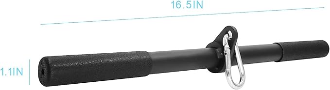 - 16.5 Inch straight rotating bar is short for tricep / bicep exercises, not wide enough for back or shoulder strengthen; Basically do press downs / pull downs / push downs, curls, kickbacks and deltoid raises. Great to develop arm muscles as triceps, biceps and improve your grip strength