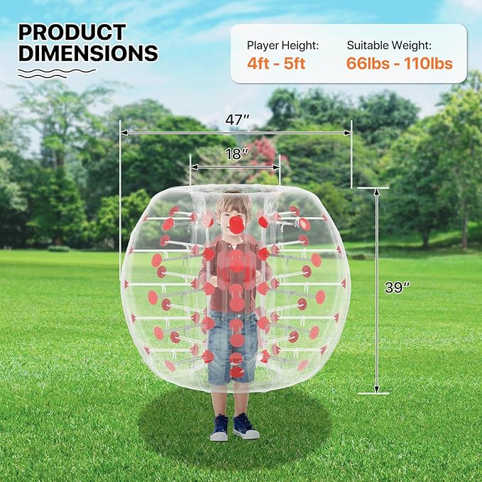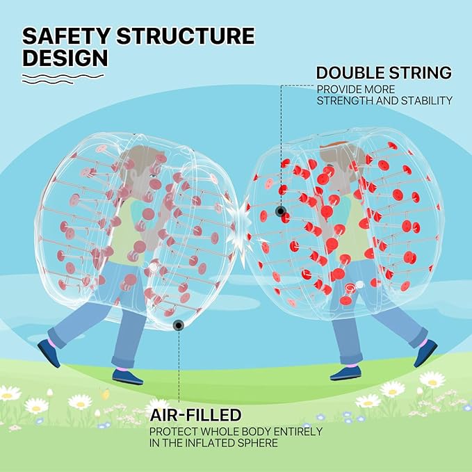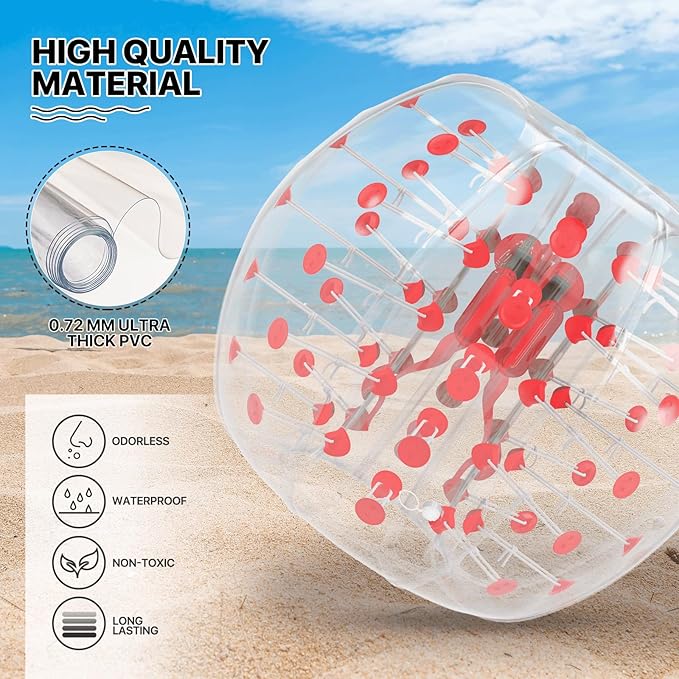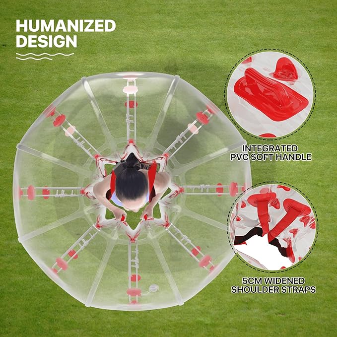 - Ergonomic Design - Bumper ball has 2 handles and 2 adjustable shoulder straps, tightly keep users inside. If you lose hold of the handles, the shoulder straps will guarantee your safety.