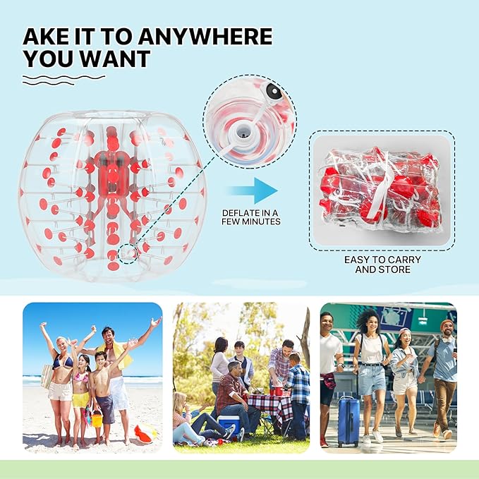 - Easy to Inflate and Deflate - Our bubble bumper ball can be easily inflated by electric pump or air pump in minutes (Pump is not included). Ready to enjoy the fun the day you receive our ball.