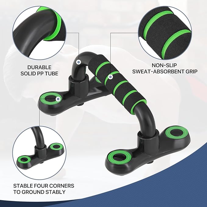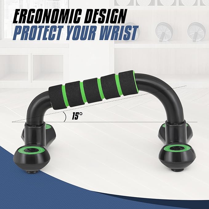 - Ergonomic Design - The I-shaped design of push-up bars can protect your wrist from hurt or injury during the workout. The push up bars increase the range of motion during push ups, make push ups easier and safe.