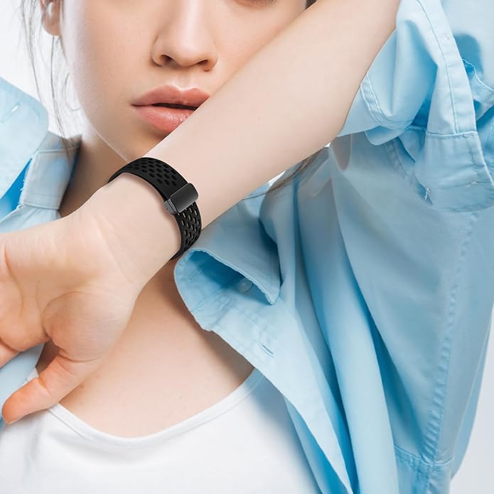 - 【Magnetic Metal Clasp】: This magnetic clasp made of high-quality metal material,with texture, more convenient to wear than the bow buckle, comfortable and flexible. The band combined design of folding buckle & silicone strap together, providing a new way to enjoy silicone sport bands and the snap-to-wear.