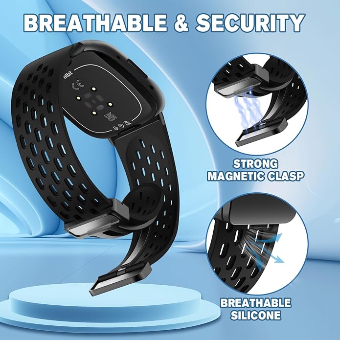 Magnetic Anti Sweat Sport Band Compatible for Fitbit 2/Fitbit Versa 4/Fitbit Sense/Fitbit 3, Waterproof