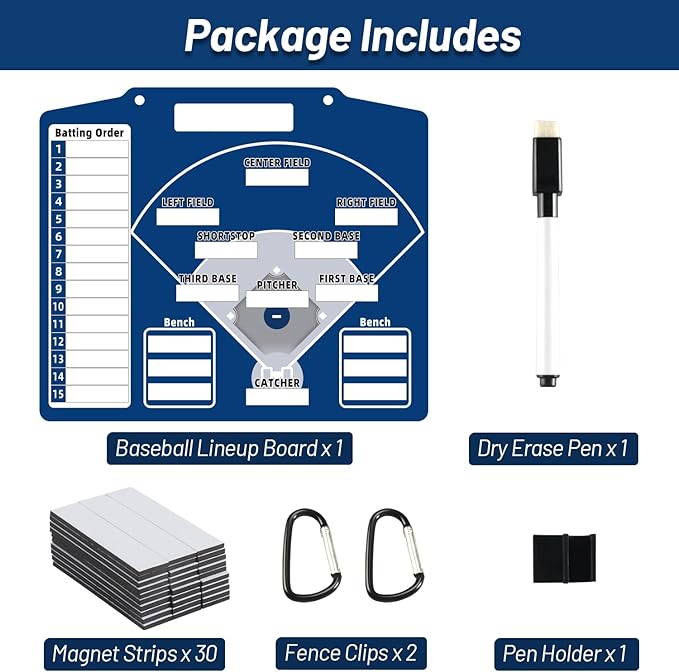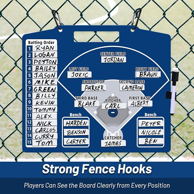 - Easy Carry with Strong Clips and Dry Erase Pen Holder: Our baseball coaching accessories has swivel hook, strong clips and pen holder, which is easy to carry to the baseball field or outfield to hang on the fence.