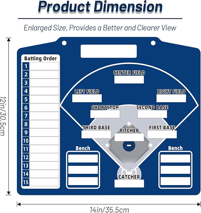 - Erases Easily Double-Sided: This lineup board is a good baseball training equipment allows to write on both sides, which writes well and erases completely.