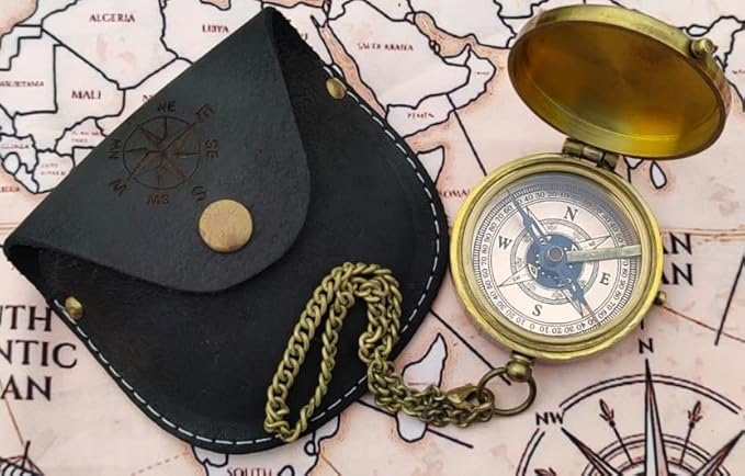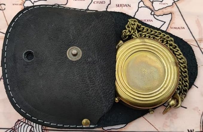 - The compass on chain comes with an impressive hand stitched leather case.