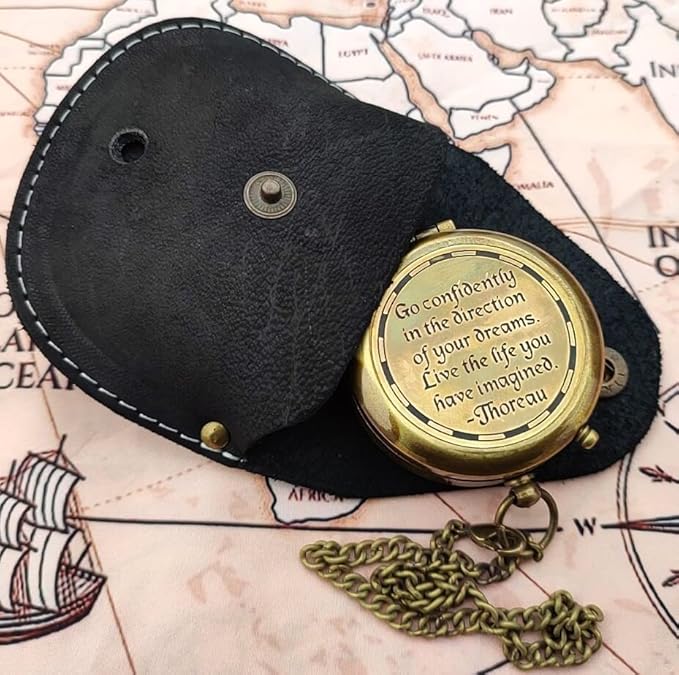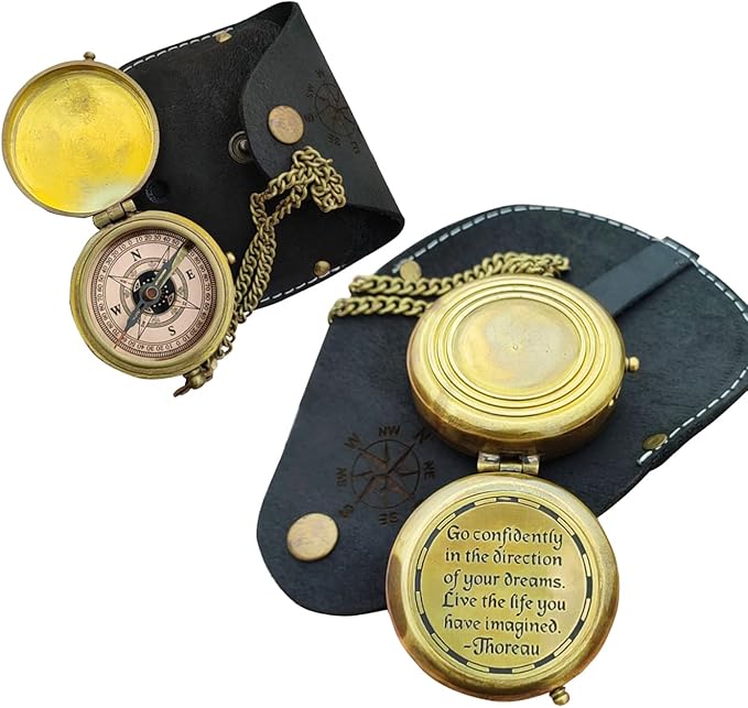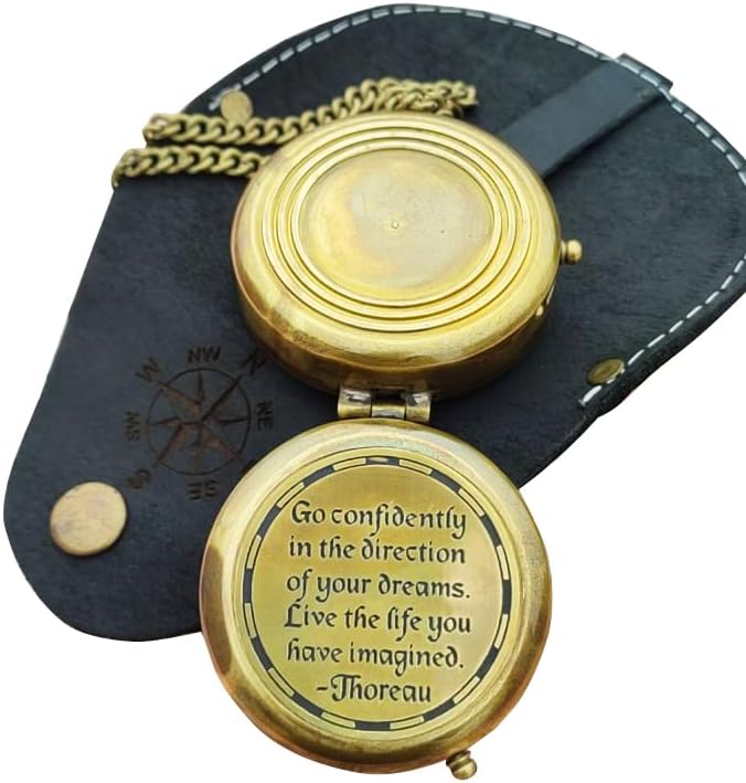 - Solid Brass Compass In Antiquated Brass Finish "GO CONFIDENTLY IN THE DIRECTION OF YOUR DREAMS LIVE THE LIFE YOU HAVE IMAGINED".