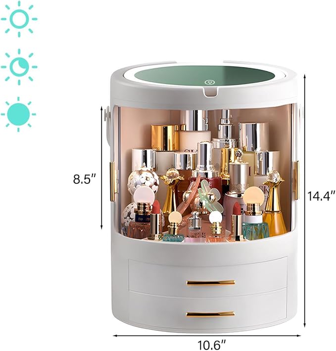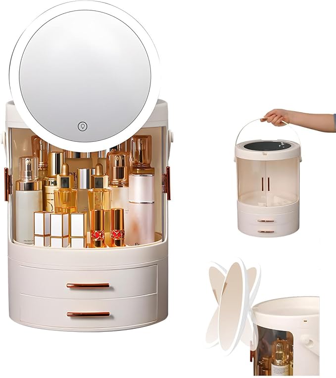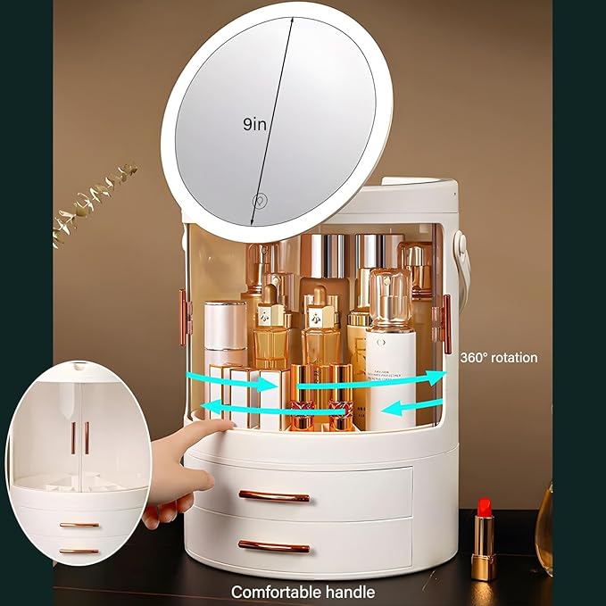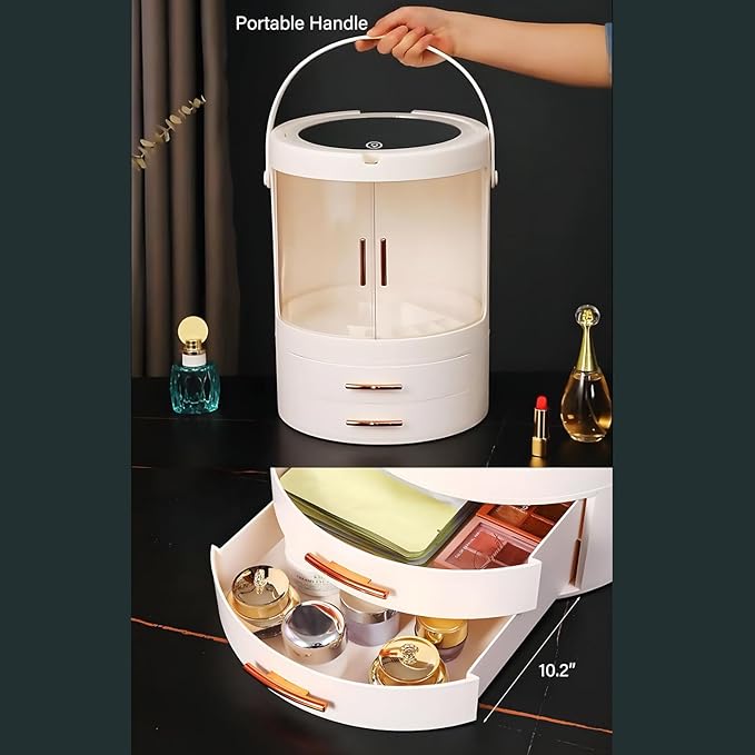 - 【Comfortable Handle】: Cosmetic organizer with LED mirror has a handle on the top. The design of the handle makes it more convenient to move around when changing rooms or moving.