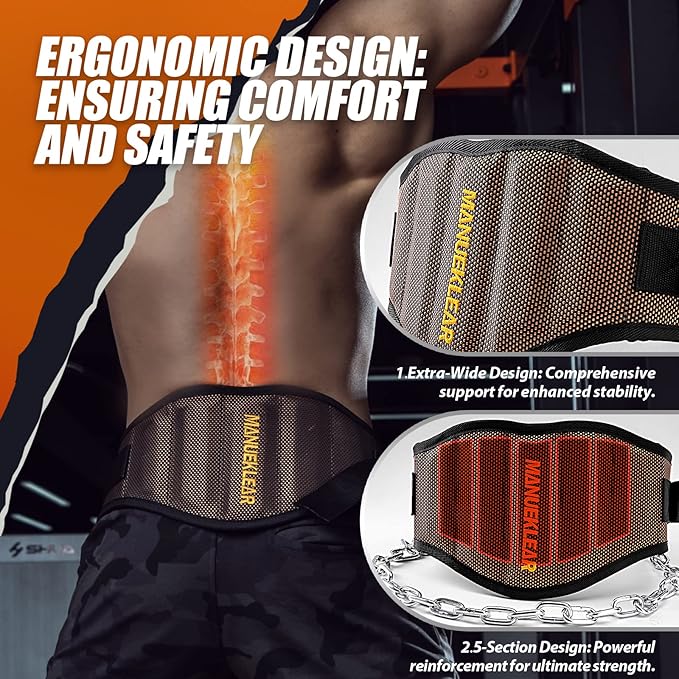 - Unmatched Quality and Comfort - At MANUEKLEAR, we prioritize top-tier quality and ergonomic design to earn the trust of our customers. Our weight belt with chains is crafted from premium materials, boasting exceptional durability and softness for a comfortable, breathable experience during every workout. The contoured design and reinforced back support hug your waist and back, improving performance and comfort.