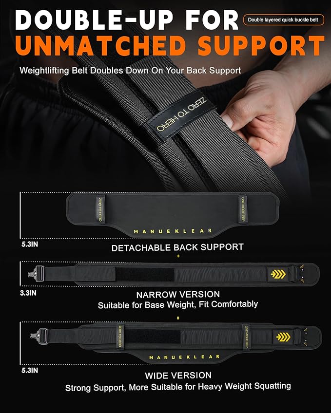 - 🔩 Double-Up for Unmatched Support - Elevate your squats and deadlifts with our dual-layer conforming design. MANUEKLEAR weightlifting belt doubles down on your back support, reinforcing the crucial L4 and L5 lumbar regions, allowing you to safely chase those personal records and handle significant weights with confidence.