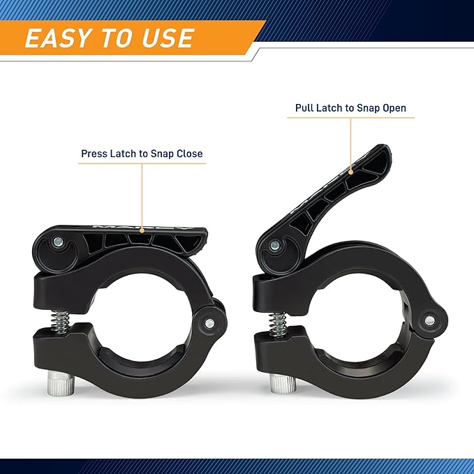 • Adjustable Tension: Press the latch down to snap the clips shut and use the adjustable knob to tighten or loosen grip on the sleeves