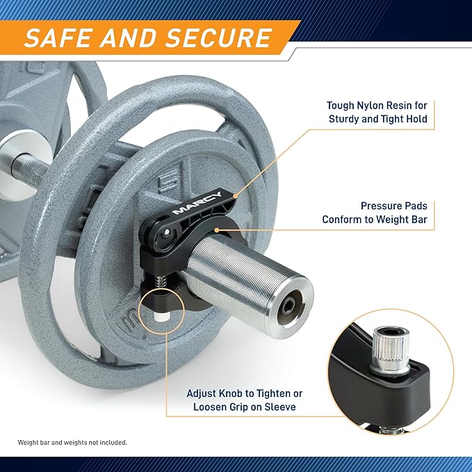 • Secure Your Weights: The Marcy Olympic Barbell Lock Collar Clips provide a tight grip, preventing weights from sliding off during intense workouts.