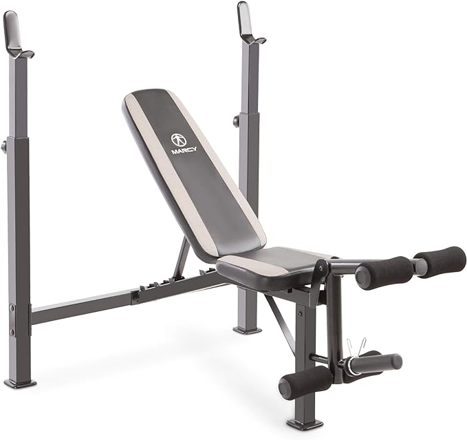 - Gym Bench: Marcy's bench press set has ergonomically designed seating made from the best and high-density foam for back comfort and durability.