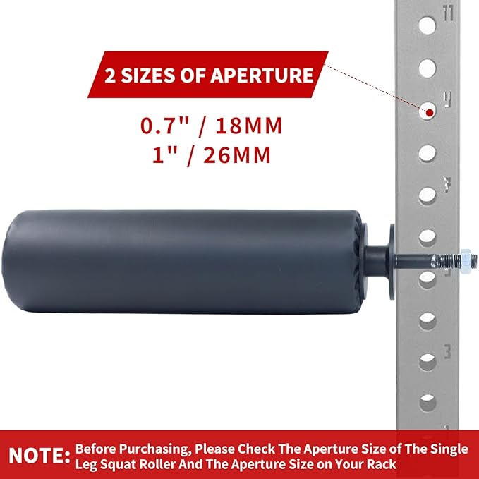- 【Easy to lnstall】Single leg squat roller is easy to install, simply insert one end into the squat rack hole and tighten the nut. One leg squat roller has 0.7" (18mm) or 1" (26mm) aperture, measure the aperture of the power rack before purchase to ensure perfect compatibility.