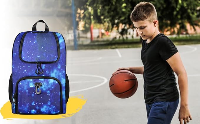 - Exquisite Design: The smooth double zipper made of Non-slip PVC grip and sturdy nylon cord, makes the soccer backpack more convenient to use and prevent from skidding. The glasses belts on the shoulder straps ensure hanging glasses easily. And the hook on the front of the colorful soccer bag allows you to hang anything you want, such as water bottles, keys, and more accessories