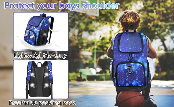 - Sturdy and Lightweight: The basketball backpack is lightweight yet rugged enough due to the high-density polyester material. It's water resistant, dirt and dust. This basketball bag's weight is 0.66 kg (1.46 lb), with comfortable padding and breathable straps which relieve the stress of the weight on the shoulders, and it will not feel heavy after packing basketball, shoes and other equipment. The bottom with four non-skid rubber feet to avoid getting dirty