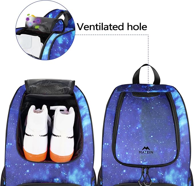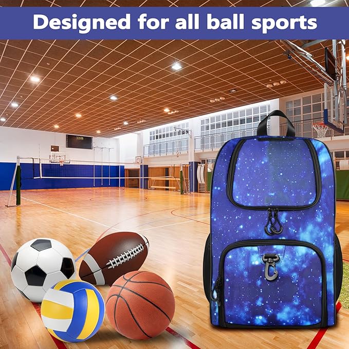 - Ball Holder and Shoe Compartment: The soccer bag is specially designed with a ball compartment to hold the basketball up to size 7, full-size soccer, volleyball, football and more. Besides, the large shoe pocket is breathable that can accommodate up to size 12 basketball shoes. The separate design of different compartments can store the training equipment you need easily and keep the ball bag clean
