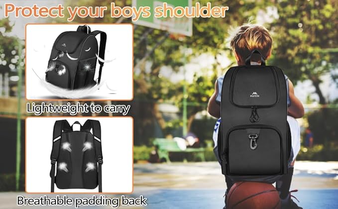 - Ball Holder and Shoe Compartment: The soccer bag is specially designed with a ball compartment to hold the basketball up to size 7, full-size soccer, volleyball, football and more. Besides, the large shoe pocket is breathable that can accommodate up to size 12 basketball shoes. The separate design of different compartments can store the training equipment you need easily and keep the ball bag clean