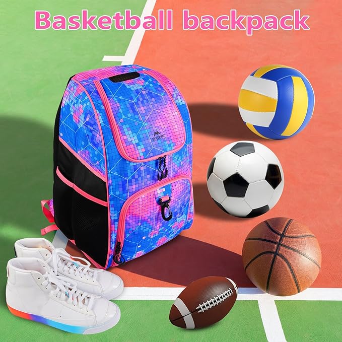 - Ball Holder and Shoe Compartment: The soccer bag is specially designed with a ball compartment to hold the basketball up to size 7, full-size soccer, volleyball, football and more. Besides, the large shoe pocket is breathable that can accommodate up to size 12 basketball shoes. The separate design of different compartments can store the training equipment you need easily and keep the ball bag clean